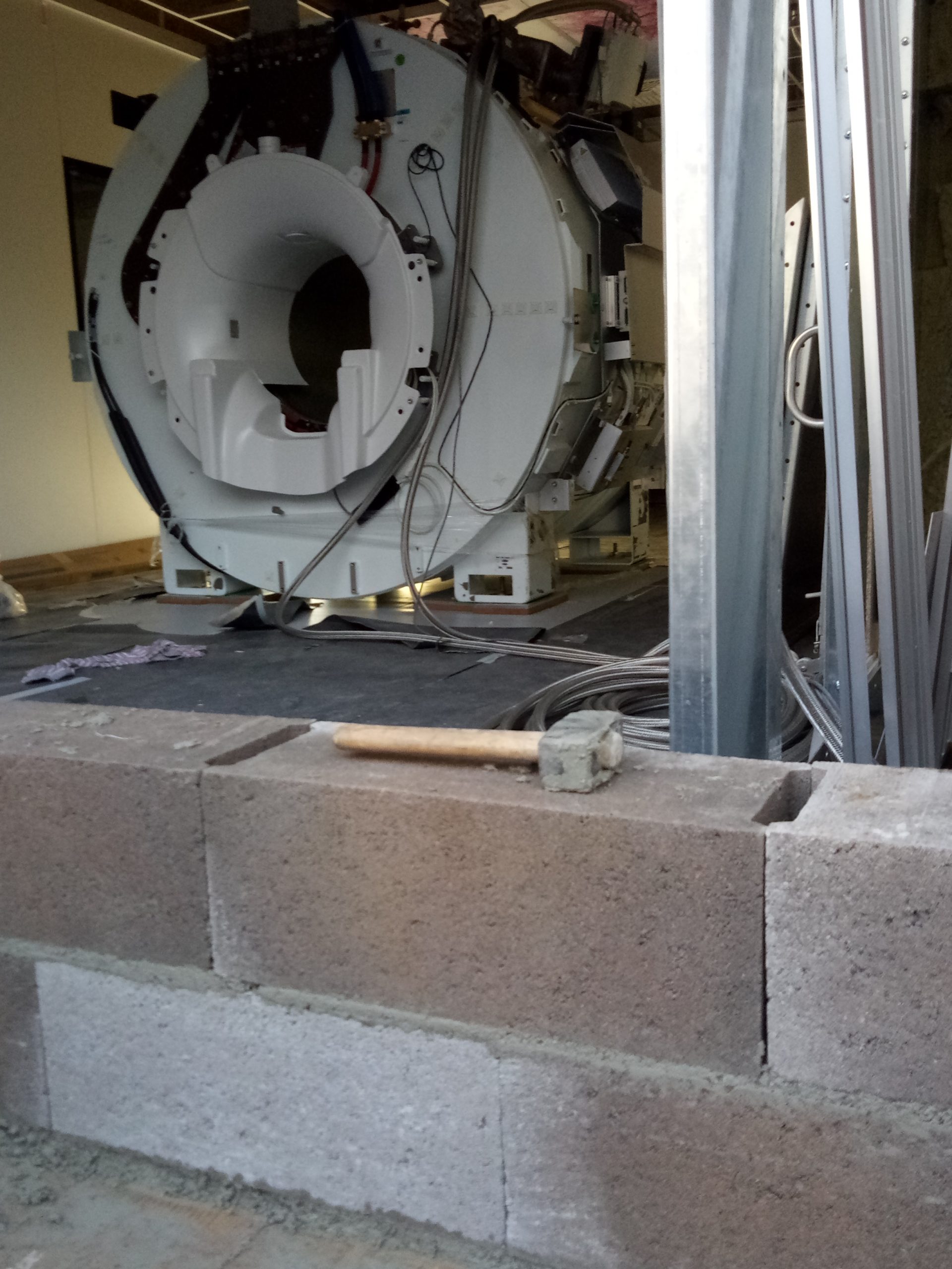 Nous avons accompagné General Electric Healthcare à l’ICANS dans la création d’un service TEP IRM (ou PET MR), appareil alliant la technologie d’imagerie par résonnance magnétique et la médecine nucléaire. Nos prestations comprenaient l’installation d’un échafaudage pour une livraison de 8 tonnes de matériel, la mise en œuvre d’un renfort structurel du bâtiment, les travaux de menuiserie, de plâtrerie, de plomberie et de climatisation. Nous avons également réalisé la panoplie d’eau glacée pour le refroidissement de l’aimant. Enfin, les travaux d’électricité (courant fort, courant faible, sécurité incendie) ont été réalisés par nos confrères de Santerne Alsace sous notre pilotage.